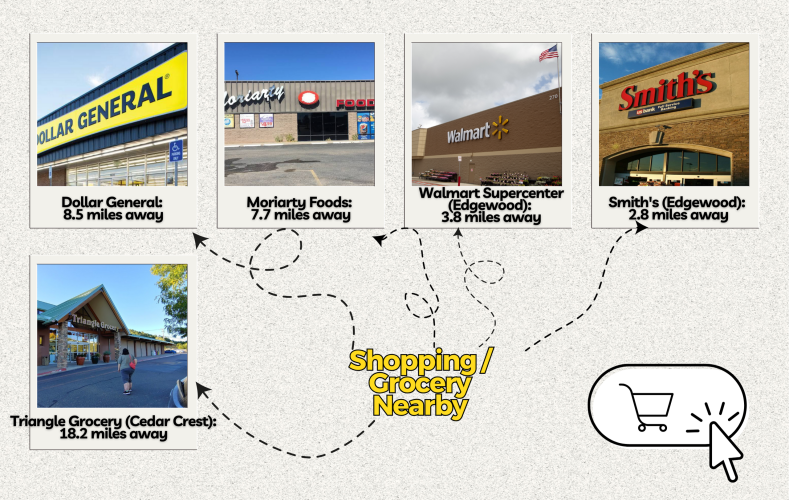 Located just 10 minutes from Edgewood, daily essentials, groceries, fuel, and dining are always within easy reach. The property is a comfortable 40–45 minutes from Albuquerque, giving you access to major employers, medical centers, cultural attractions, and entertainment while still coming home to quiet country surroundings. Santa Fe sits just a little over an hour away, offering an easy weekend escape for arts, markets, and desert-mountain charm. Nearby attractions include Wildlife West Nature Park, Manzano Mountains State Park, and scenic drives through the Turquoise Trail.